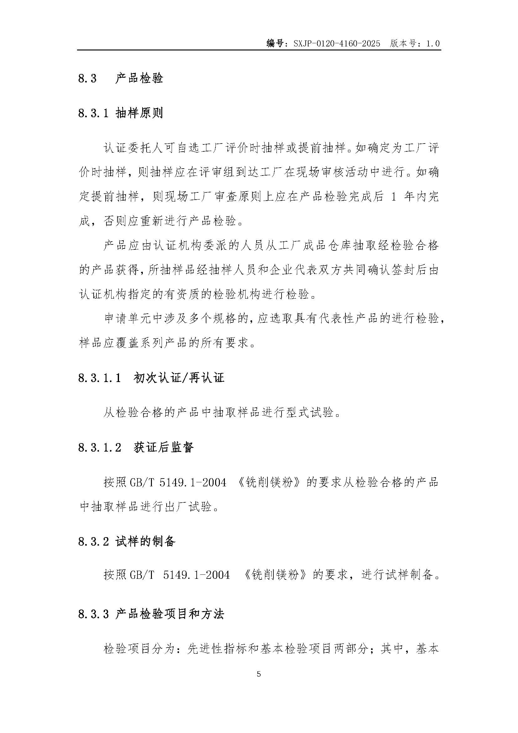 SXJP-0120-4160-2025 “山西精品”認證實施規則 銑削鎂粉
