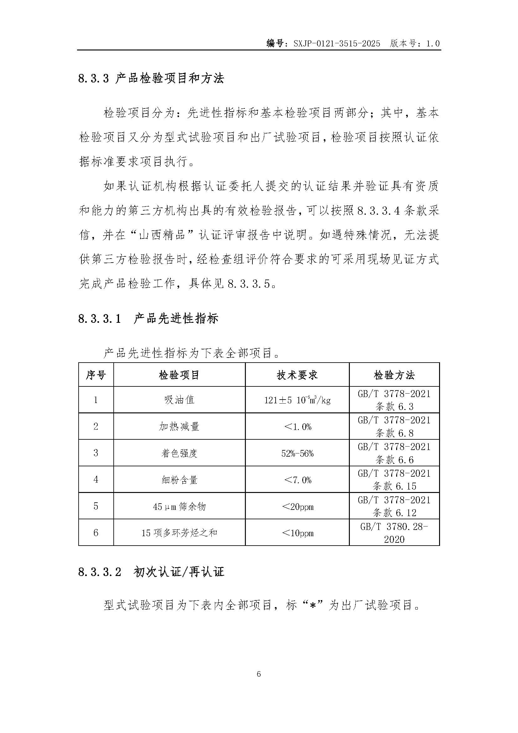 SXJP-0121-3515-2025 “山西精品”認證實施規則橡膠用炭黑