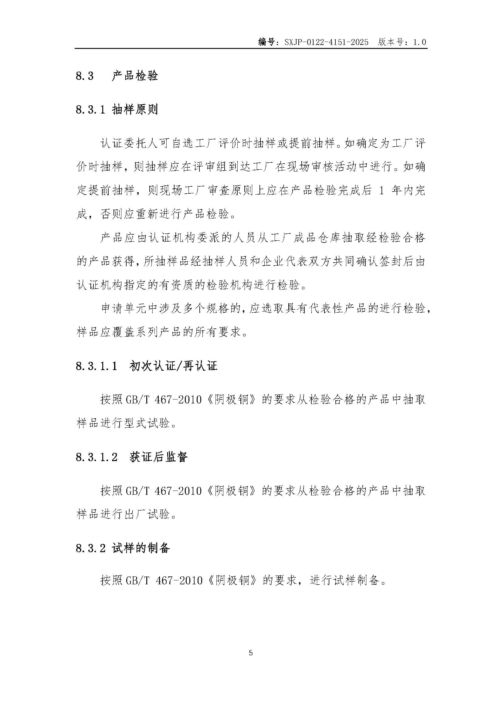 SXJP-0122-4151-2025 “山西精品”認證實施規則 陰極銅