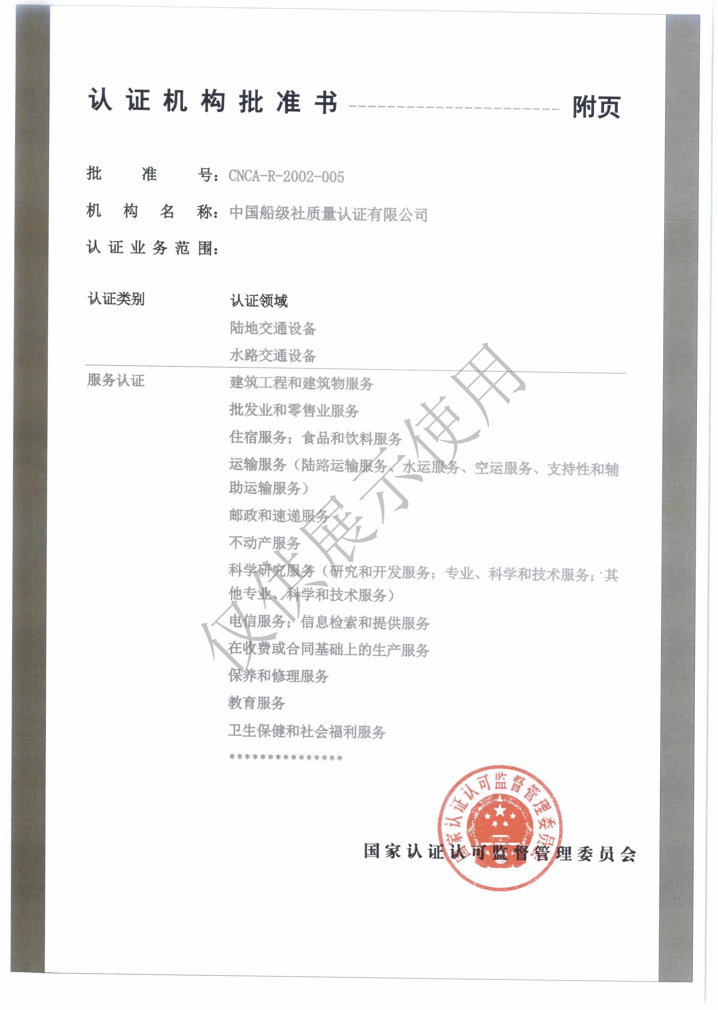 認證機構(gòu)批準書